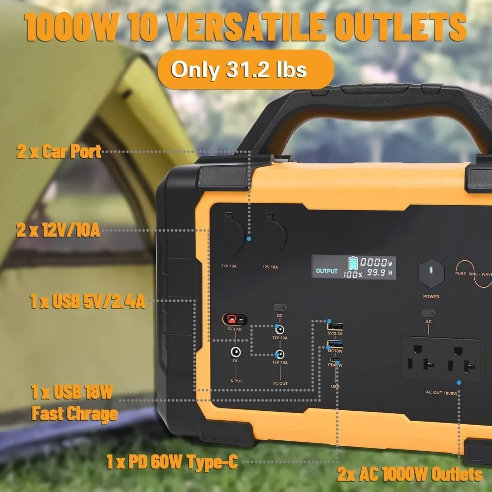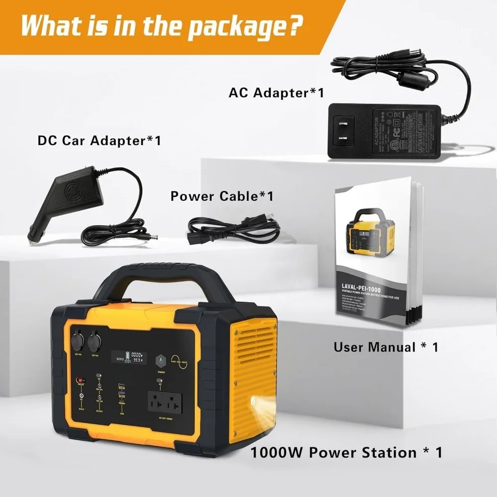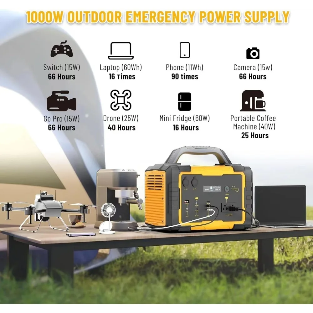 Power your life anywhere. This 1000W Portable Power Station pairs a high-capacity 1075Wh lithium battery with a 120V AC outlet to keep essential devices running during outages, road trips, RV weekends, camping, and outdoor events. Quiet and fume-free, it’s a reliable alternative to gas generators—ideal for phones, laptops, lights, routers, small appliances, and medical/CPAP devices (verify wattage). Recharge three ways—at home from the wall, on the road from your vehicle, or off-grid with compatible solar panels—so you’re always ready when the power drops or adventure calls. A durable, grab-and-go design makes it easy to carry and store, while built-in protections (over-current, over-voltage, short-circuit, temperature) help safeguard your devices and the battery.