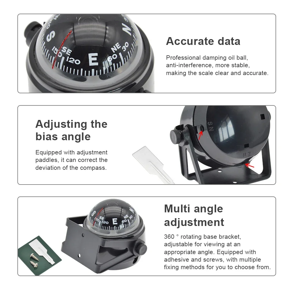Ball-Shaped Vehicle & Marine Compass — Pivoting, Splash-Resistant, Easy-Read Dial
