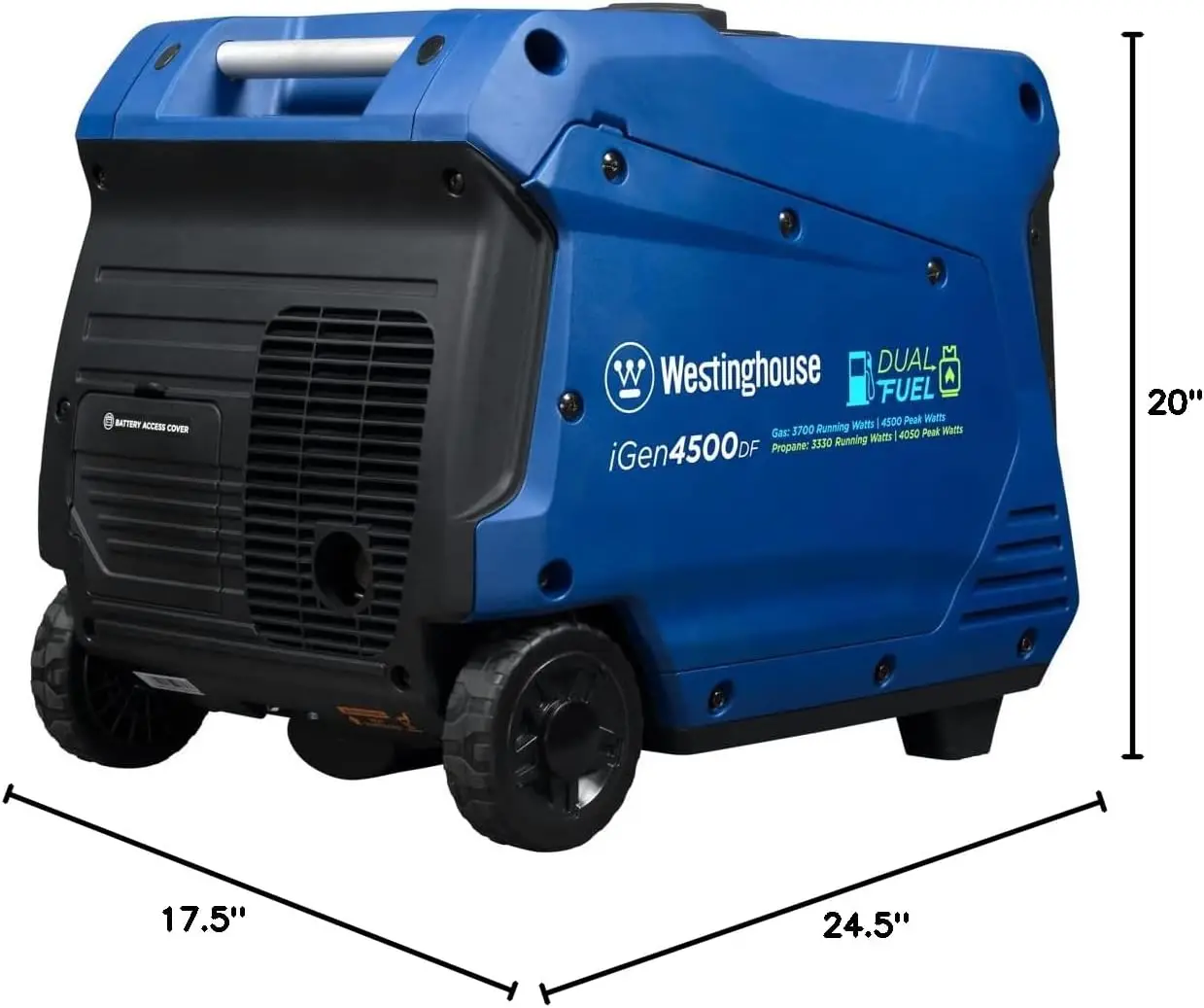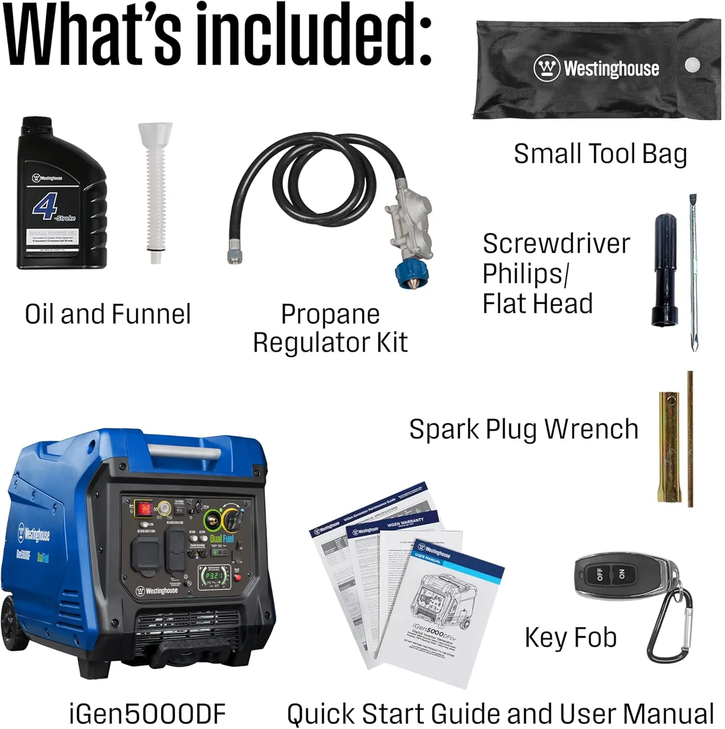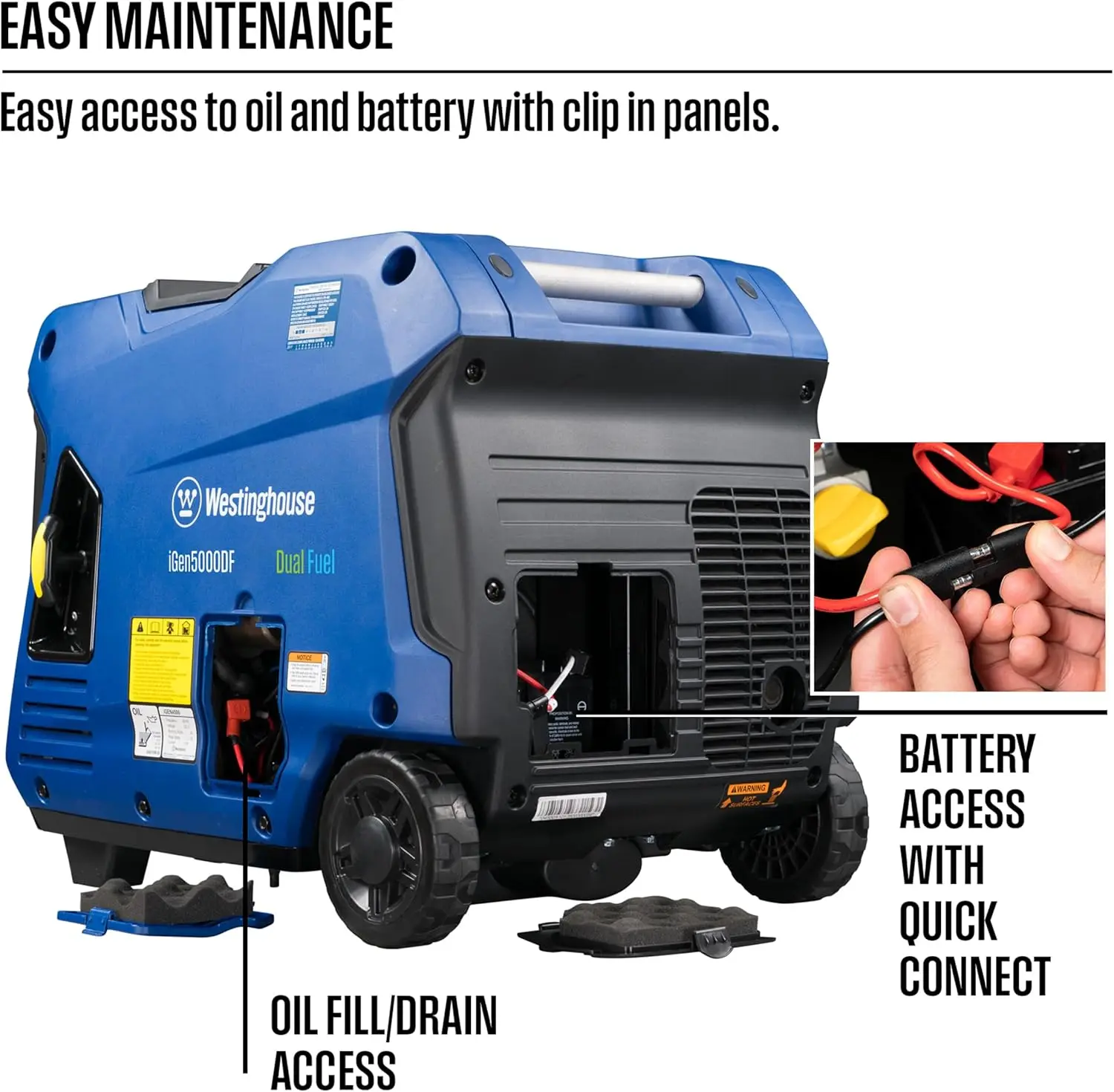 Power your adventures and protect your home with a versatile, low-noise workhorse. This Super Quiet Dual-Fuel Portable Inverter Generator delivers up to 5000 peak watts with the flexibility to run on gasoline or propane, giving you longer runtimes, easier storage, and fewer trips to the pump. A remote electric start (with push-button and recoil backup) lets you fire it up from across the campsite or driveay.